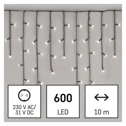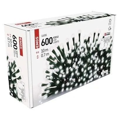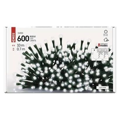 EMOS LED vánoční rampouchy, 10 m, venkovní i vnitřní, studená bílá, programy