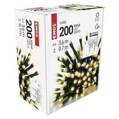 EMOS LED vánoční rampouchy, 3,6 m, venkovní i vnitřní, teplá bílá, programy