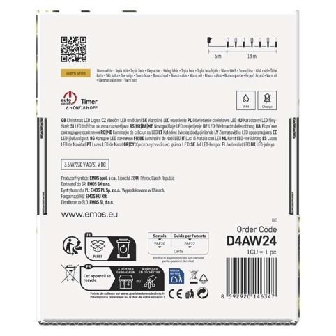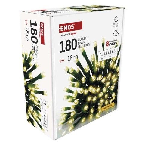 EMOS LED vánoční řetěz, 18 m, venkovní i vnitřní, teplá bílá, programy, časovač