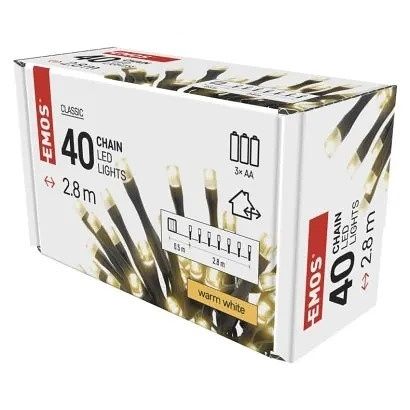 EMOS LED vánoční řetěz, 2,8 m, 3x AA, venkovní i vnitřní, teplá bílá, časovač