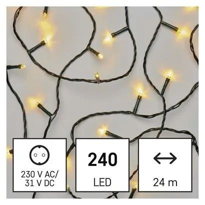 EMOS LED vánoční řetěz, 24 m, venkovní i vnitřní, teplá bílá, programy, časovač