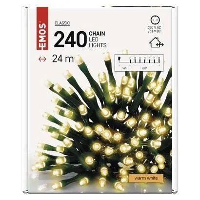 EMOS LED vánoční řetěz, 24 m, venkovní i vnitřní, teplá bílá, časovač