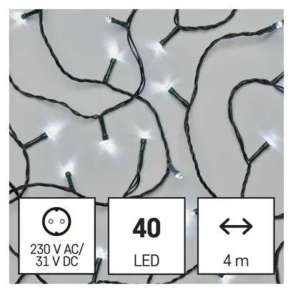 EMOS LED vánoční řetěz, 4 m, venkovní i vnitřní, studená bílá, časovač