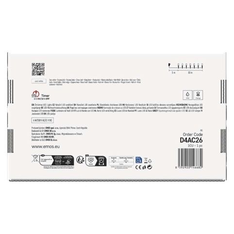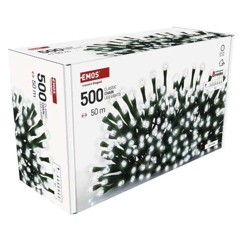EMOS LED vánoční řetěz, 50 m, venkovní i vnitřní, studená bílá, programy, časovač