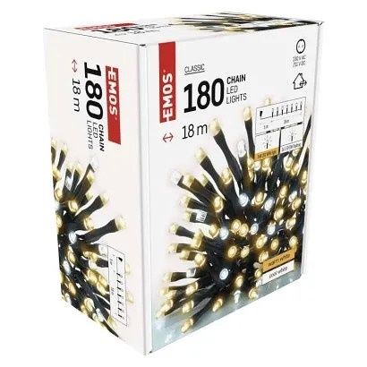EMOS LED vánoční řetěz, 18 m, venkovní i vnitřní, teplá/studená bílá, časovač