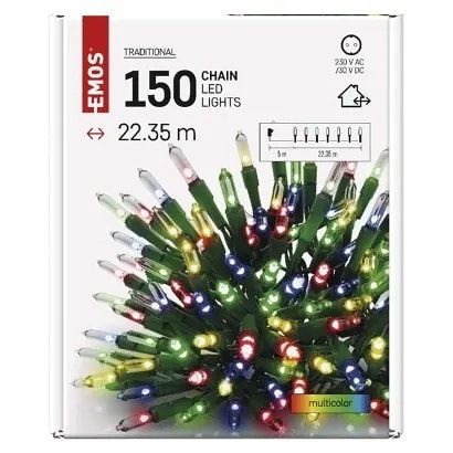 EMOS LED vánoční řetěz – tradiční, 22,35 m, venkovní i vnitřní, multicolor