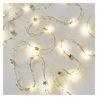 EMOS LED vánoční řetěz zlatý – hvězdičky, 1,9 m, 2x AA, vnitřní, teplá bílá, časovač