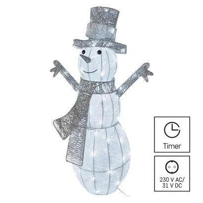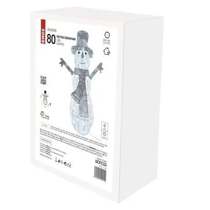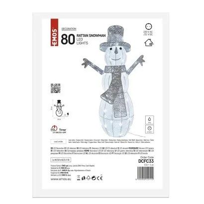 EMOS LED vánoční sněhulák ratanový, 82 cm, vnitřní, studená bílá, časovač