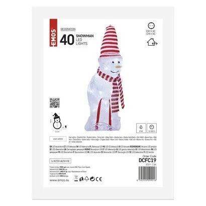 EMOS LED vánoční sněhulák s čepicí a šálou, 46 cm, venkovní i vnitřní, studená bílá