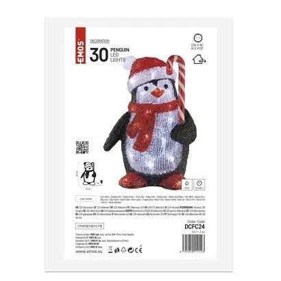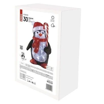 EMOS LED vánoční tučňák, 30,5 cm, venkovní i vnitřní, studená bílá