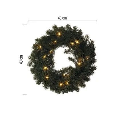EMOS LED vánoční věnec, 40 cm, 2x AA, vnitřní, teplá bílá, časovač