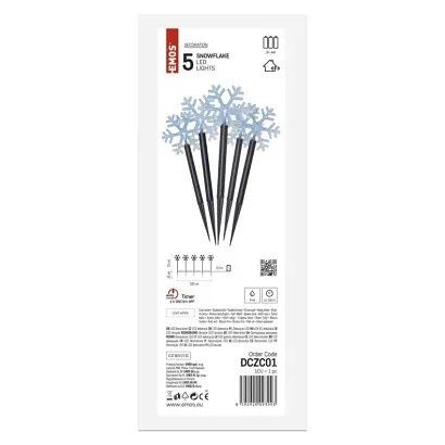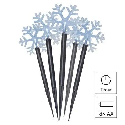 EMOS LED vánoční zapichovací vločky, 35 cm, 3x AA, venkovní i vnitřní, studená bílá, časov