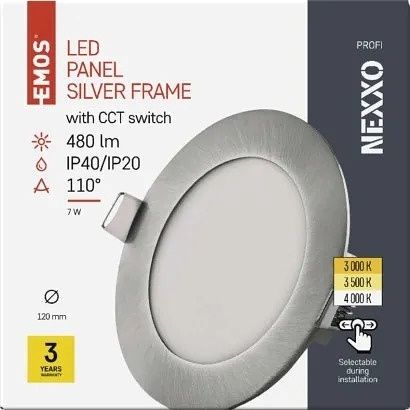 EMOS LED vestavné svítidlo NEXXO, kruhové, stříbrné, 7W, se změnou CCT