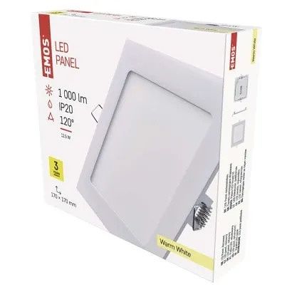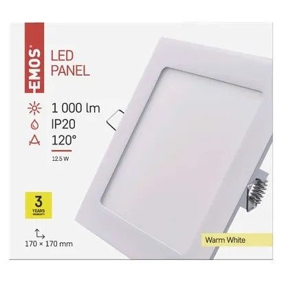 EMOS LED vestavné svítidlo PROFI, čtvercové, bílé, 12,5W teplá bílá