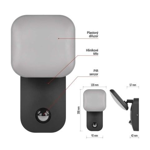 EMOS LED zahradní nástěnné svítidlo NIKA, čidlo soumraku, 12 x 12 x 20 cm, 12,8 W, teplá b