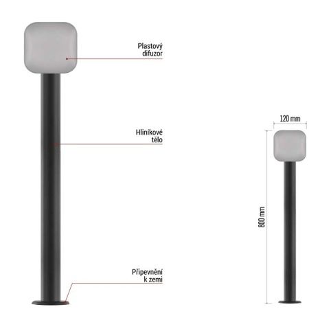 EMOS LED zahradní sloupkové svítidlo NIKA, 16,5 x 12 x 80 cm, 12,5 W, teplá bílá