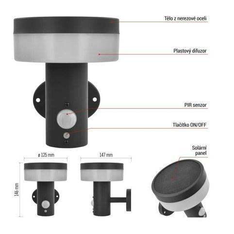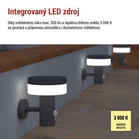 EMOS LED zahradní solární nástěnné svítidlo TERION, čidlo soumraku, 12,5 x 14,7 x 14,2 cm
