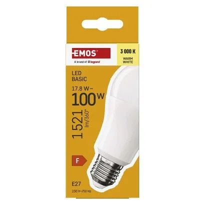 EMOS LED žárovka Basic A60 / E27 / 17,8 W (100 W) / 1521 lm / teplá bílá