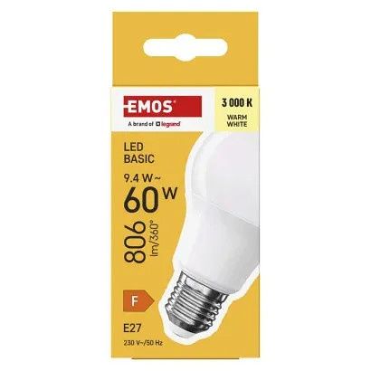 EMOS LED žárovka Basic A60 / E27 / 9,4 W (60 W) / 806 lm / teplá bílá