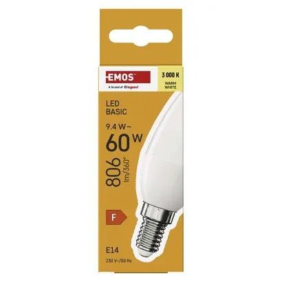 EMOS LED žárovka Basic svíčka / E14 / 9,4 W (60 W) / 806 lm / teplá bílá