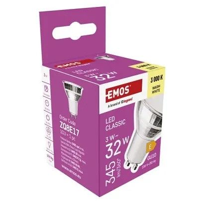 EMOS LED žárovka Classic MR16 stříbrná/ GU10 / 3 W (32 W) / 345 lm / teplá bílá