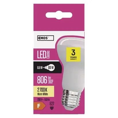 EMOS LED žárovka Classic R63 / E27 / 8,8 W (60 W) / 806 lm / teplá bílá