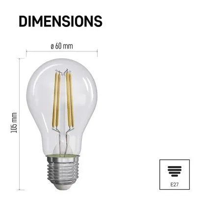 EMOS LED žárovka Filament A60 / E27 / 8,5 W (75 W) / 1 055 lm / teplá bílá / stmívatelná