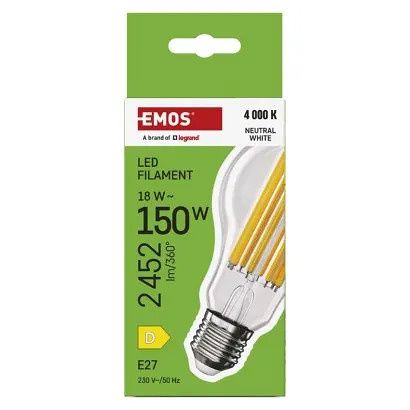 EMOS LED žárovka Filament A70 / E27 / 18 W (150 W) / 2452 lm / neutrální bílá