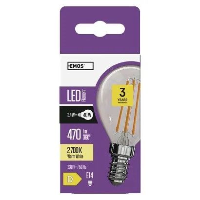 EMOS LED žárovka Filament Mini Globe / E14 / 3,4 W (40 W) / 470 lm / teplá bílá