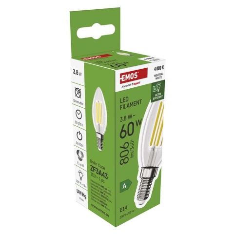 EMOS LED žárovka Filament svíčka A CLASS / E14 / 3,8 W (60 W) / 806 lm / neutrální bílá