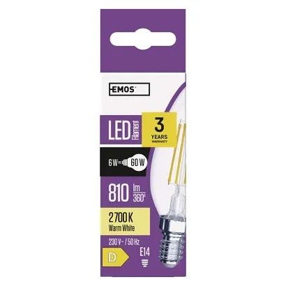 EMOS LED žárovka Filament svíčka / E14 / 6 W (60 W) / 810 lm / teplá bílá