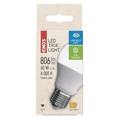 EMOS LED žárovka True Light A60 / E27 / 7,2 W (60 W) / 806 lm / neutrální bílá