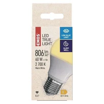 EMOS LED žárovka True Light A60 / E27 / 7,2 W (60 W) / 806 lm / teplá bílá