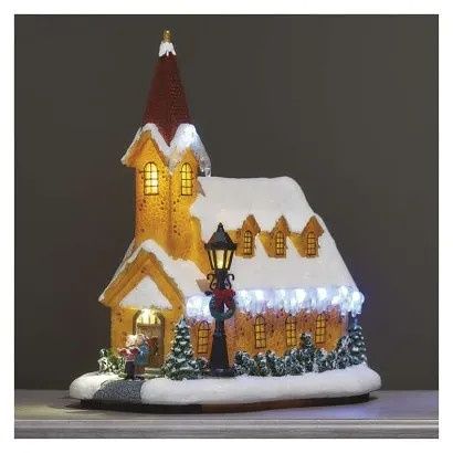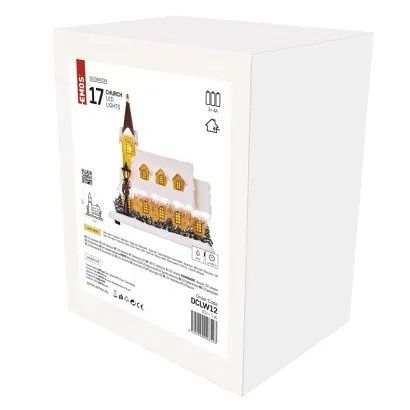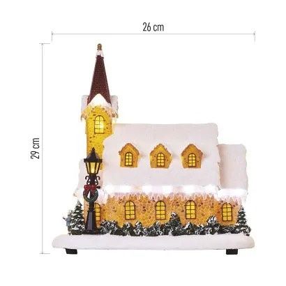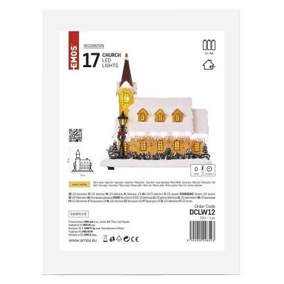 EMOS LED zasněžený vánoční kostel, 26 cm, 3x AA, vnitřní, teplá bílá