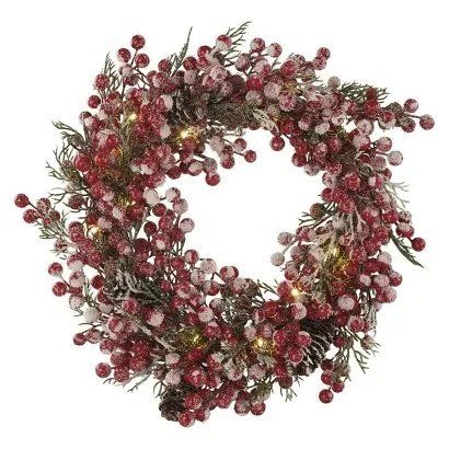 EMOS LED zdobený vánoční věnec, 38 cm, 3x AA, vnitřní, teplá bílá, časovač