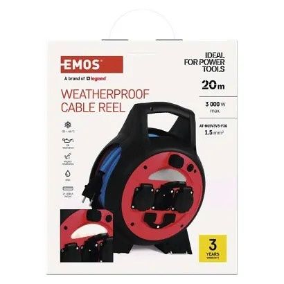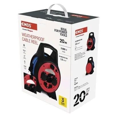EMOS Počasí odolný prodluž. kabel na bubnu 20 m / 3 zásuvky / modrý / silikon / 230 V / 1,