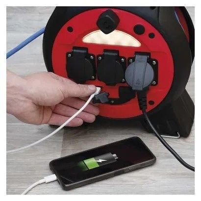 Mrazuvzdorný kabel s plastovou izolací - pro střední namáhání, v prostředí obyčejném, studeném i vlhkém (odolný proti ztíženým klimatickým podmínkám a teplotám až do -35°C). Je odolný vůči oleji a UV záření. Krytí IP44 umožňuje použití ve venkovním prostředí.Součástí těla navijáků je i LED reflektor 3 W (35 lm), který poslouží pro osvětlení místa navijáku.2× USB typ A ?2,1 A max.