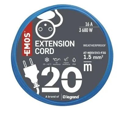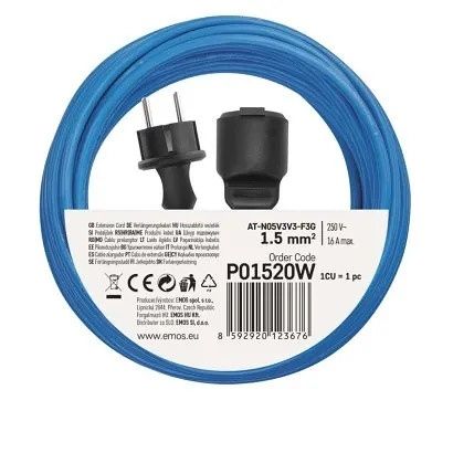 EMOS Počasí odolný prodlužovací kabel 20 m / 1 zásuvka / modrý / silikon / 230 V / 1,5 mm2
