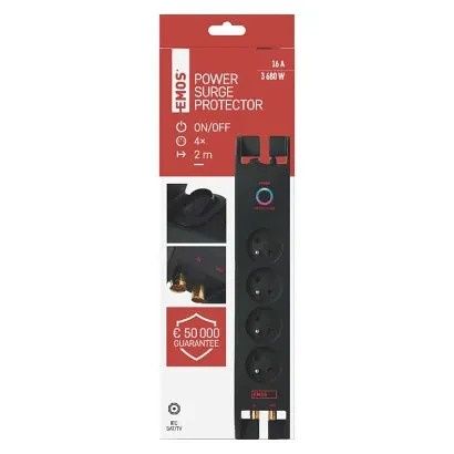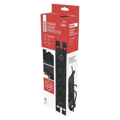 EMOS Přepěťová ochrana 1800J – 4 zásuvky, 2m, černá