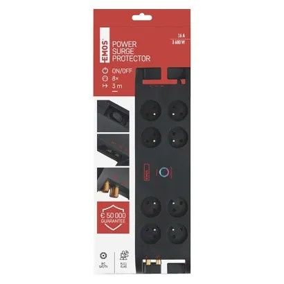 EMOS Přepěťová ochrana 1800J – 8 zásuvek, 3m, černá