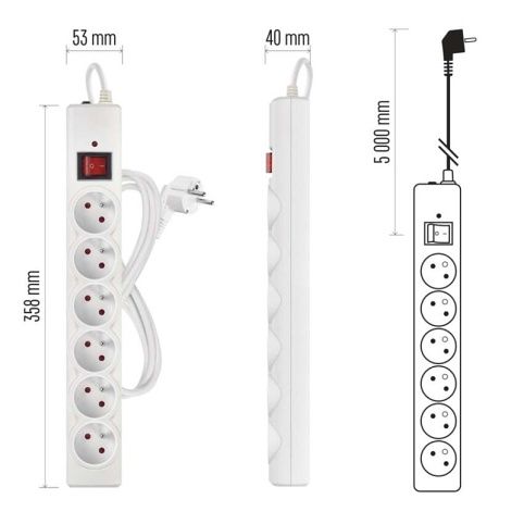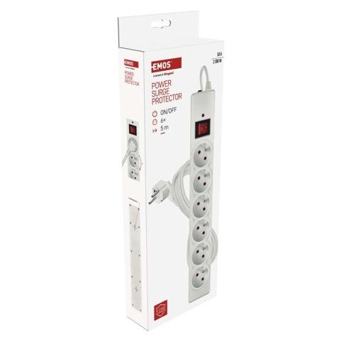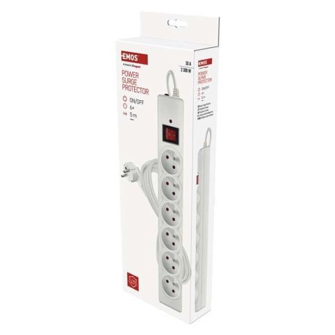 EMOS Přepěťová ochrana – 6 zásuvek, 5 m, bílá