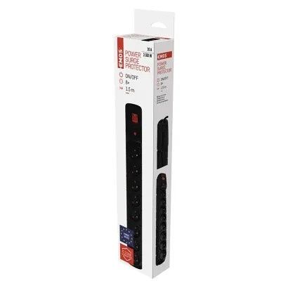 EMOS Přepěťová ochrana – 8 zásuvek, 1,5m, černá