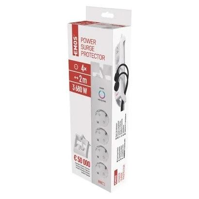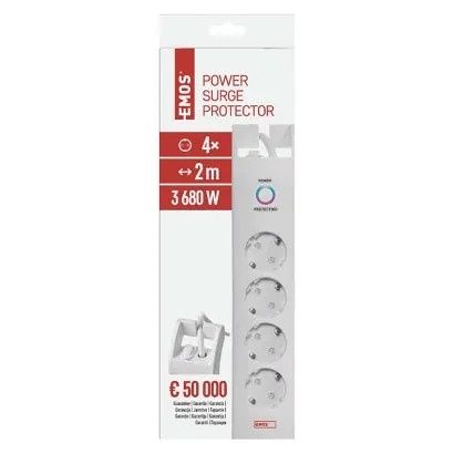 EMOS Přepěťová ochrana SCHUKO 900J – 4 zásuvky, 2m, bílá
