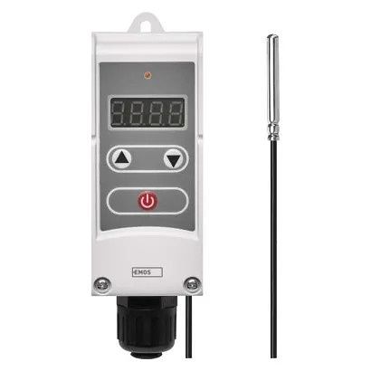 Příložný termostat s prodlouženým čidlem pro povrchovou montáž. Snímá teplotu vody v zásobnících teplé užitkové vody a nebo v topných systémech. Umožňuje regulaci teploty, hlídání teplotních omezení a funkci poklesu teploty.Výhody produktuMožnost nastavení hystereze.Digitální podsvícený displej.Bezšroubový terminál.