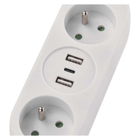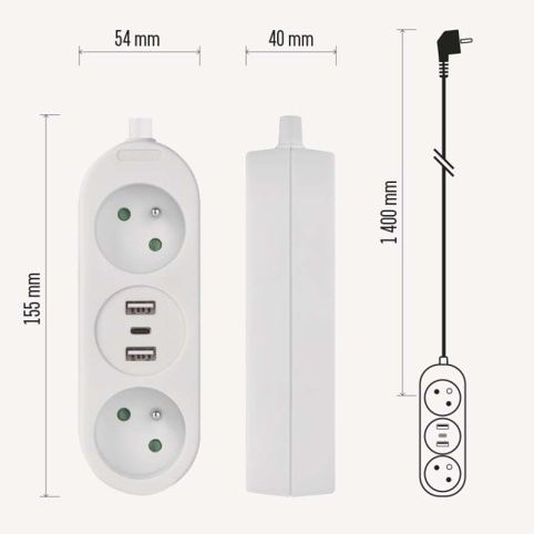 EMOS Prodlužovací kabel 1,4 m / 2 zásuvky+2×USB-A+1×USB-C / bílý / PVC / 1,5 mm2