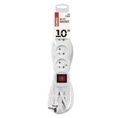 EMOS Prodlužovací kabel 10 m / 4 zásuvky / s vypínačem / bílý / PVC / 1 mm2