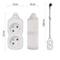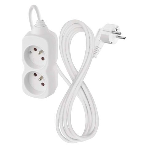 Bílý prodlužovací přívod, 2 zásuvky s dětskými clonkami a délkou 2 m. Průřezem vodiče 1 mm2. Vhodný pro maximální zátěž 16 A max.Při montáži na stěnu je nutné použít vrut se zápustnou hlavou PZ max. průměr 2,5–3 mm, délka 30–40 mm. V případě použití jiného průměru hrozí poškození plastové části otvoru. Pokud dojde k poškození plastové části otvoru, prodlužovací přívod nepoužívejte.