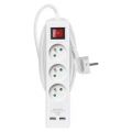 EMOS Prodlužovací kabel 2 m / 3 zásuvky / s vypínačem / bílý / PVC / s USB / 1,5 mm2