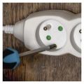 Prodlužovací přívod 2 m na 230 V~ slouží k prodloužení elektrické energie tam, kam pevná zásuvka nedosáhne.Při montáži na stěnu je nutné použít vrut se zápustnou hlavou PZ max. průměr 2,5–3 mm, délka 30–40 mm. V případě použití jiného průměru hrozí poškození plastové části otvoru. Pokud dojde k poškození plastové části otvoru, prodlužovací přívod nepoužívejte.
