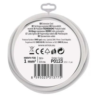 EMOS Prodlužovací kabel 3 m / 1 zásuvka / bílý / PVC / 1 mm2